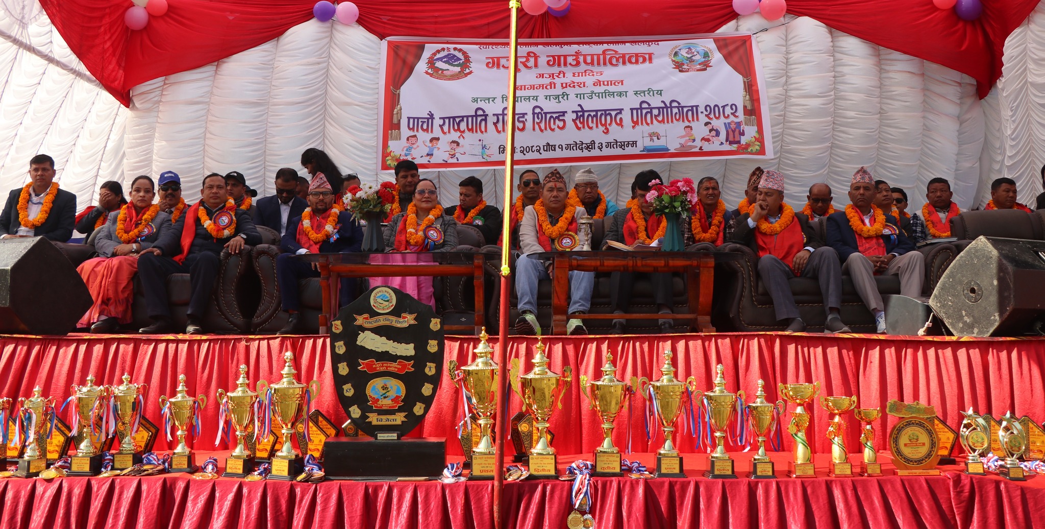 गजुरी गाउँपालिकामा पाँचौँ राष्ट्रपति रनिङ शिल्ड खेलकुद प्रतियोगिता उद्घाटन